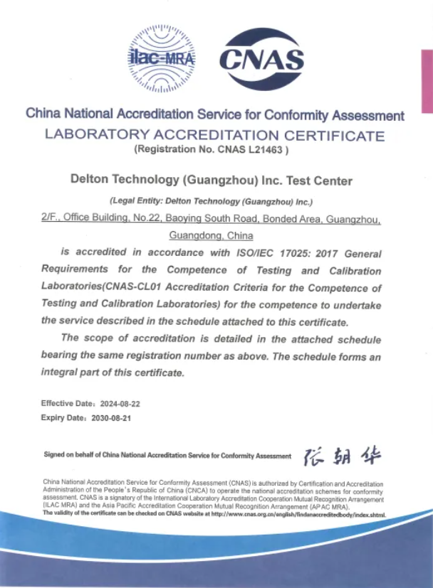 乐鱼官方网页版-乐鱼(中国) 检测中心(以下简称“广合科技检测中心”)顺利通过中国合格评定国家认可委员会(“China National Accreditation Service for Conformity Assessment”, CNAS)的认可,成功获得CNAS认可标识和认可证书(注册号:CNAS L21463),标志着我司在检测技术能力和管理水平上迈上了新的台阶。